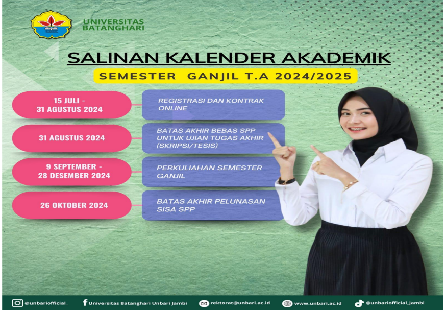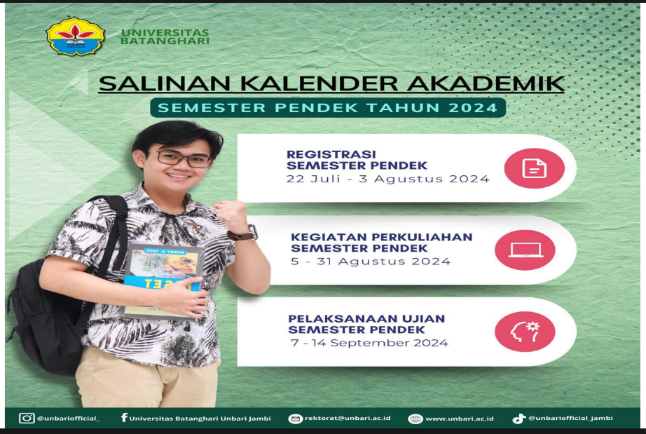 July 19, 2024 Akademik,dosen,mahasiswa,semester,tendik,unbari, Share this post Peringkat Universitas Batanghari di Tingkat Regional dan Tingkat Nasional Tahun 2023 OPEN RECRUITMENT (Satgas PPKS Tahun 2024) Related Posts PENANDATANGAN PERJANJIAN KERJA SAMA (PKS) FAKULTAS HUKUM & FAKULTAS PERTANIAN UNIVERSITAS BATANGHARI DENGAN PT BANK CIMB NIAGA SYARIAH JAMBI TENTANG SCHOOL AND CAMPUS ACTIVATION PROGRAM Posted on July 13, 2024 UNIVERSITAS BATANGHARI (UNBARI) JAMBI MELAKUKAN PENJAJAKAN KERJASAMA DENGAN PERPUSTAKAAN NASIONAL REPUBLIK INDONESIA (PNRI/ PERPUSNAS) Posted on June 3, 2022 SIVITAS AKADEMIKA UNIVERSITAS BATANGHARI (UNBARI) JAMBI MENGUCAPKAN SELAMAT ATAS DIRAIHNYA JUARA 3 PADA ENTREPRENEURSHIP AWARD (EA) V OLEH ARBI KURNIAWAN Posted on October 25, 2021