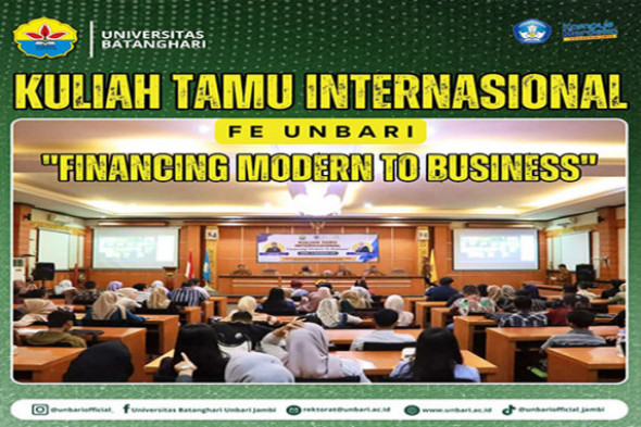 Fakultas Ekonomi Universitas Batanghari pada semester Ganjil Tahun Akademik 2024/2025 melaksanakan kegiatan Kuliah Tamu Internasional “Financing Modern To Business”Dengan menghadirkan Pemateri Prof.Dr.Syafinar Ismail dari Mara University Malaysia , untuk mahasiswa S1 Program Studi Manajemen, juga oleh Dosen dan Staf  Fakultas Ekonomi yang dilaksanakan di Aula Drs. Abdulrahmad Sayuti Unbari (15-11-2024)