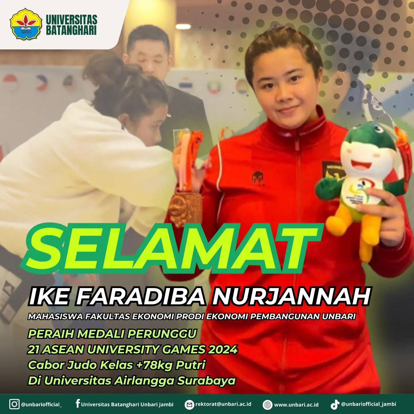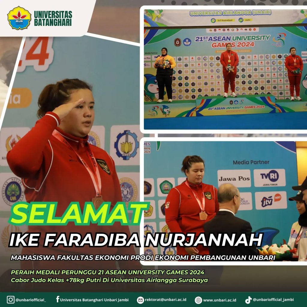 Dimana Ike Faradiba Nurjannah yang merupakan salah satu mahasiswi Fakultas Ekonomi (FE) Unbari berhasil sumbangkan satu mendali perunggu dalam cabang olahraga Judo kelas +78kg putri di ajang tersebut.