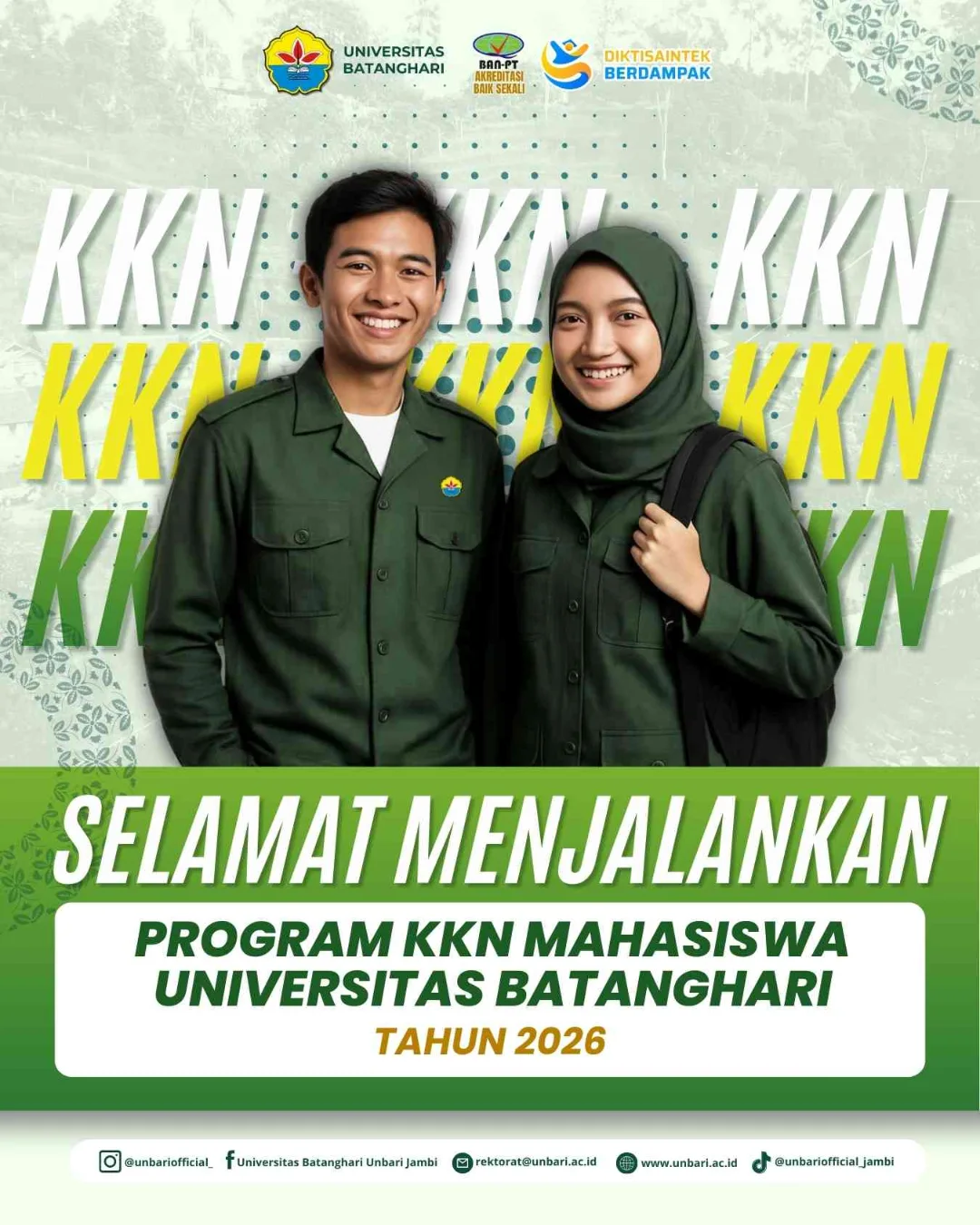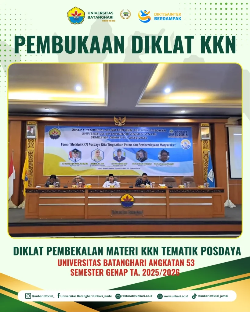 January 22, 2026 Diklat Pembekalan Materi KKN Tematik Posdaya, Universitas Batanghari Angkatan 53 Semester Genap TA. 2025/2026 Share this post Tahapan Pendaftaran Wisuda ke-59 Selamat Tahun Baru Imlek 2026 Related Posts Penerimaan Mahasiswa Baru TA. 2025/2026 Posted on January 21, 2025 Sivitas Akademika Universitas Batanghari mengucapkan “Selamat Hari Raya Idul Adha tahun 1442 H” Posted on July 19, 2021 Yudisium Fakultas Ekonomi UNBARI Semester Ganjil TA. 2023/2024 Posted on November 18, 2023