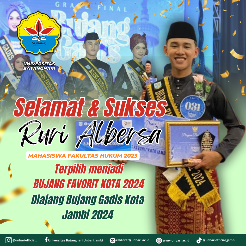 May 31, 2024 Universitas Batanghari mengucapkan selamat dan sukses kepada Mahasiswa : Kota Jambi,mahasiswa,Provinsi Jambi, Share this post Sambutan Rektor Universitas Batanghari dalam Wisuda Ke-55 HIMA Sejarah Mengadakan Pelatihan Content Creator Related Posts SEMINAR NASIONAL FAKULTAS HUKUM UNIVERSITAS BATANGHARI (FH UNBARI) JAMBI Posted on December 14, 2019 PENDAFTARAN MAHASISWA BARU GEL. 3 UNBARI TAHUN AKADEMIK 2024/2025 Posted on July 1, 2024 SELAMAT ULANG TAHUN KOTA JAMBI ke-78 Posted on May 17, 2024