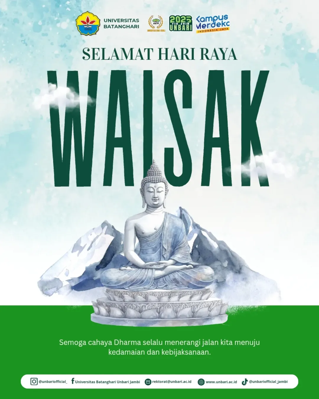 Pjs Rektor (Ibu Afdalisma, SH, M.Pd.) beserta Sivitas Akademika Universitas Batanghari (UNBARI) Jambi mengucapkan “Selamat Hari Raya WAISAK“