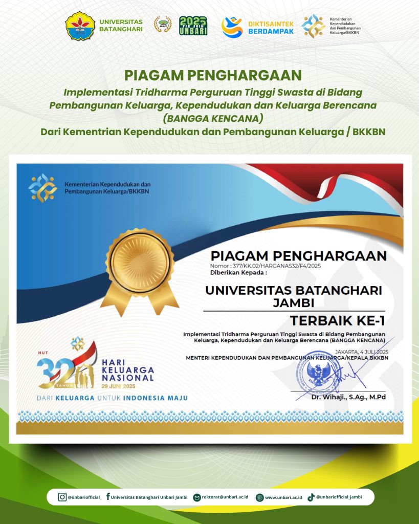 Penghargaan diberikan kepada UNIVERSITAS BATANGHARI diterima oleh Kepala LPPM