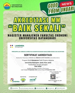 Magister Manajemen Fakultas Ekonomi Universitas Batanghari Meraih Hasil Akreditasi yaitu Baik Sekali Sebuah pencapaian yang luar biasaSemoga semakin maju dan berkembang