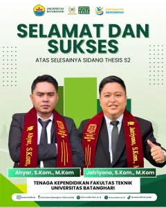 Selamat dan Sukses atas Kelulusan Sidang Thesis S2 – Ahyar, S.Kom, M.Kom– Jatriono, S.Kom, M.Kom Tenaga Kependidikan di Fakultas Teknik Universitas Batanghari