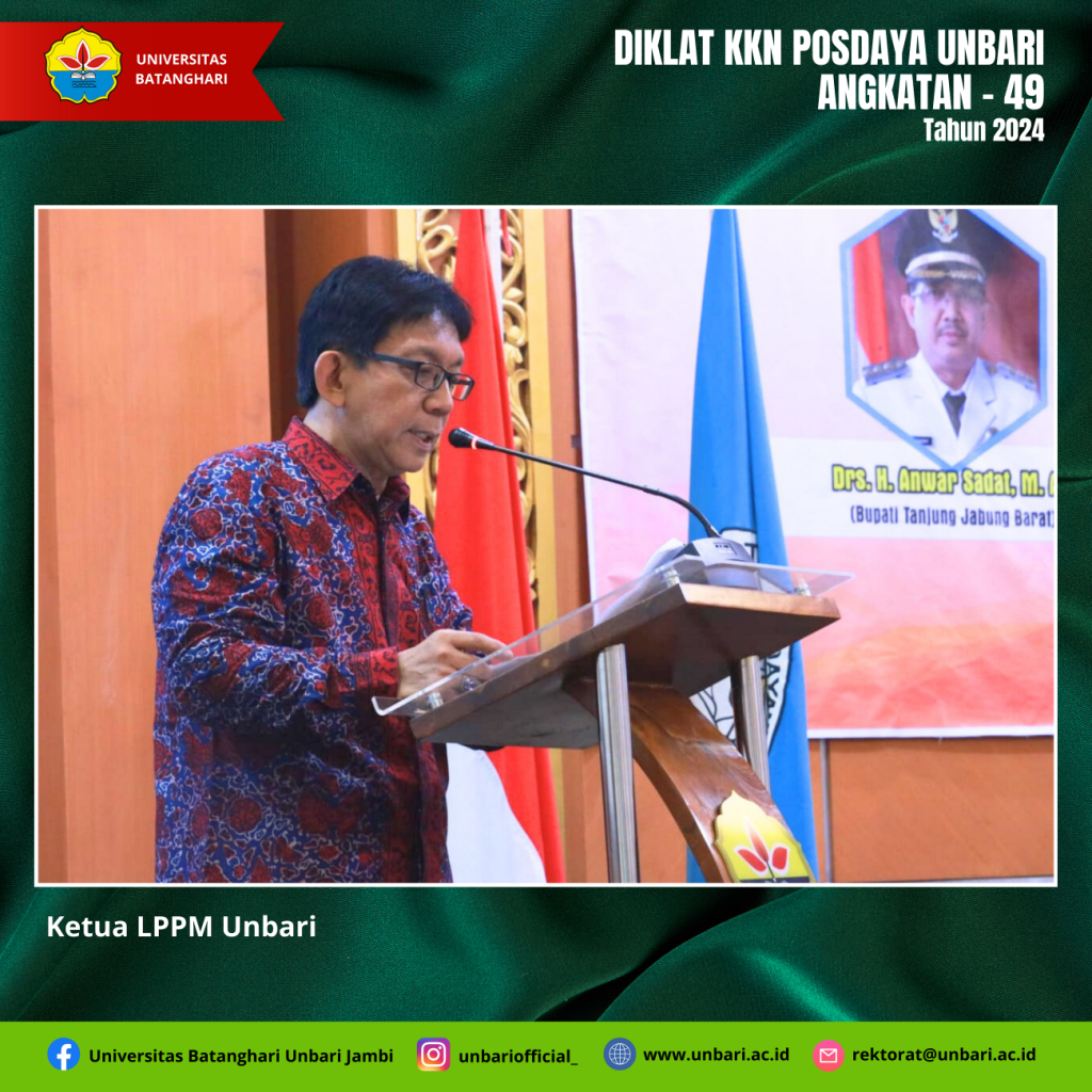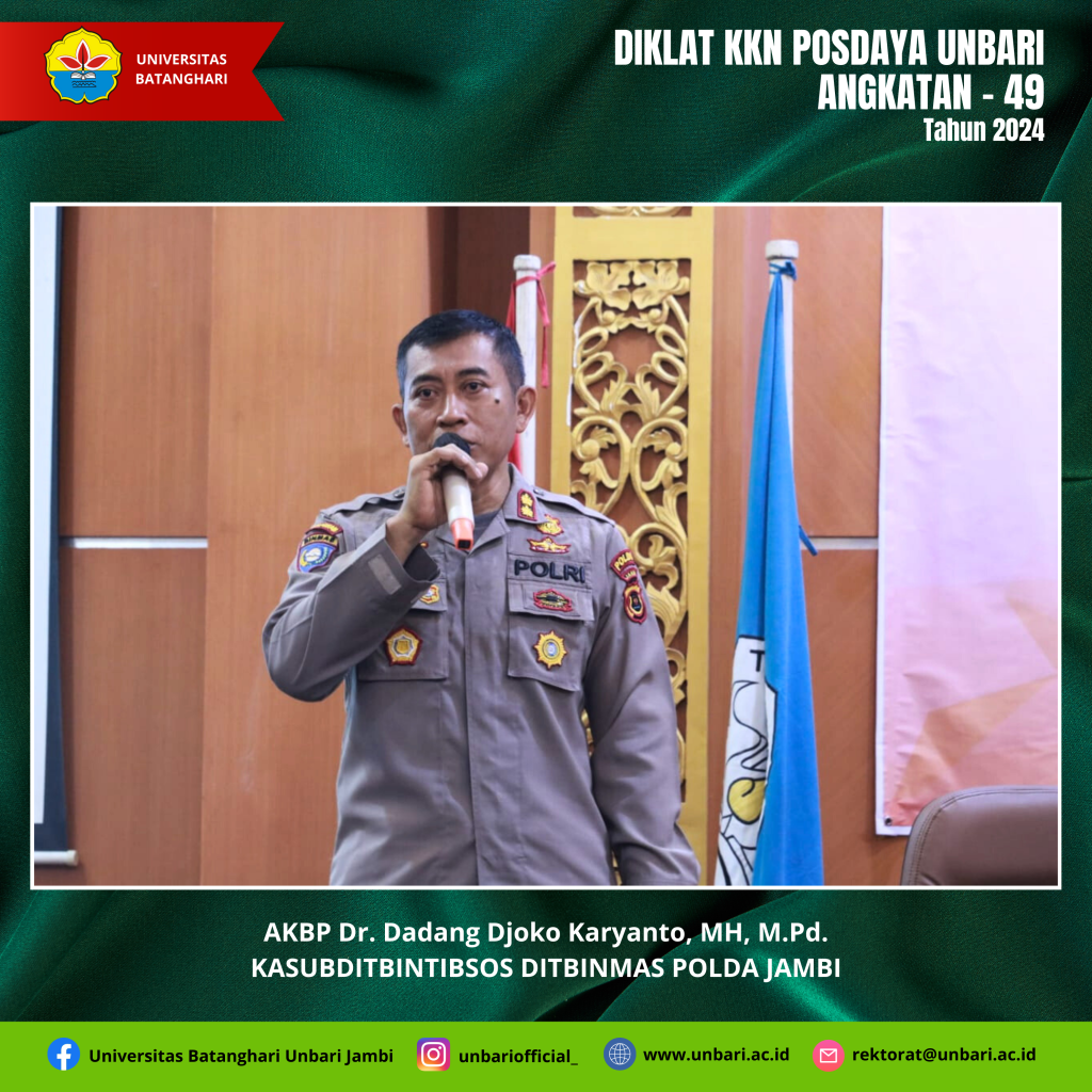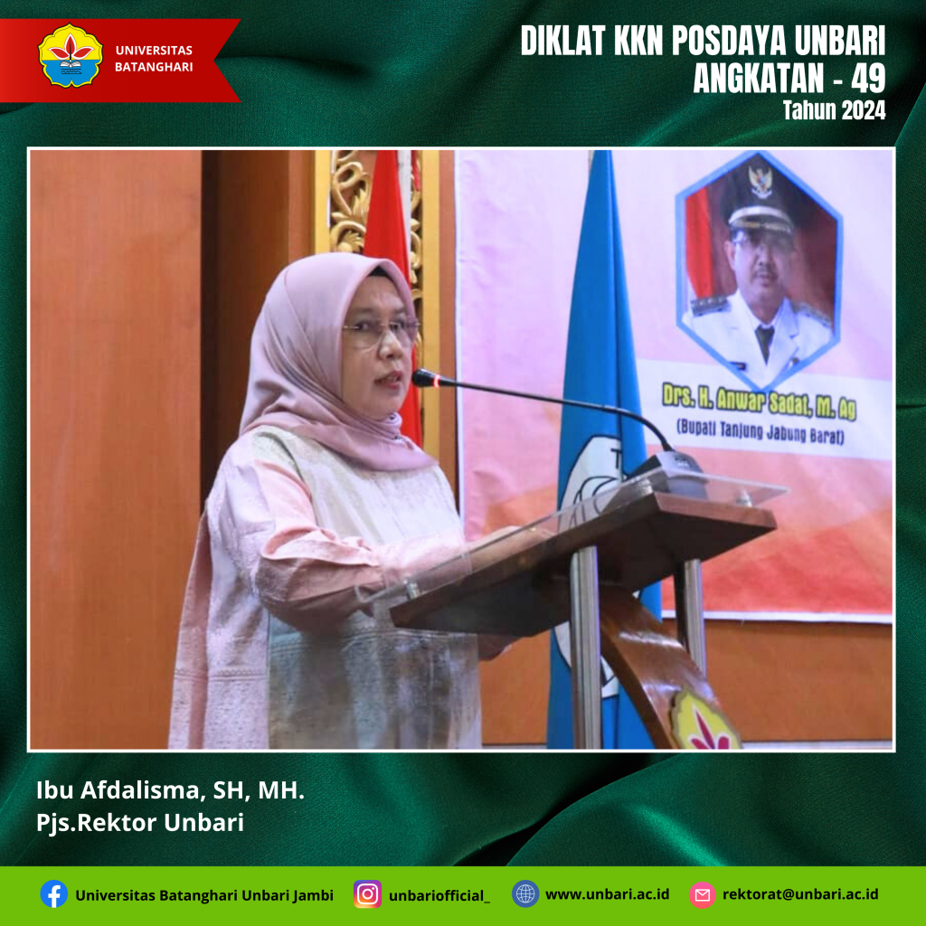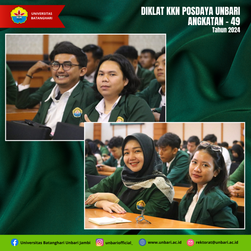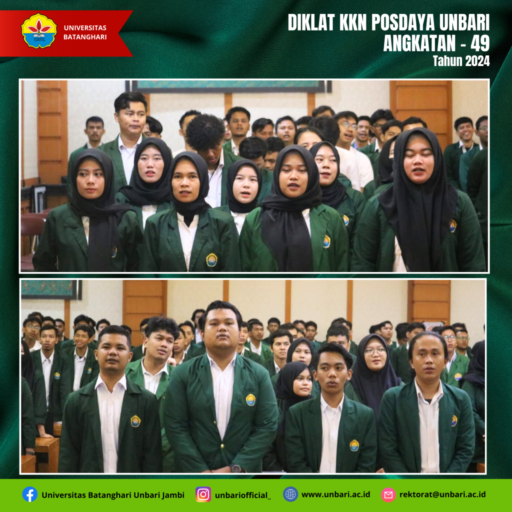 Mahasiswa Universitas Batanghari pada tanggal 1 Pebruari 2024 melaksanakan Diklat Pembekalan Materi KKN Tematik Posdaya Angkatan XLIX semester genap TA 2023/2024 dengan tema “Melalui KKN Posdaya Kita Tingkatkan Peran dan Pemberdayaan Masyarakat”. Pelaksanaan KKN Tematik Posdaya Universitas Batanghari diikuti oleh Mahasiswa sebanyak 186 orang yang tediri dari Fakultas KIP 1 Orang, Fakultas Ekonomi 12 orang, Fakultas Hukum 32 orang, Fakultas Teknik 101 Orang dan Fakultas Pertanian 30 orang.
