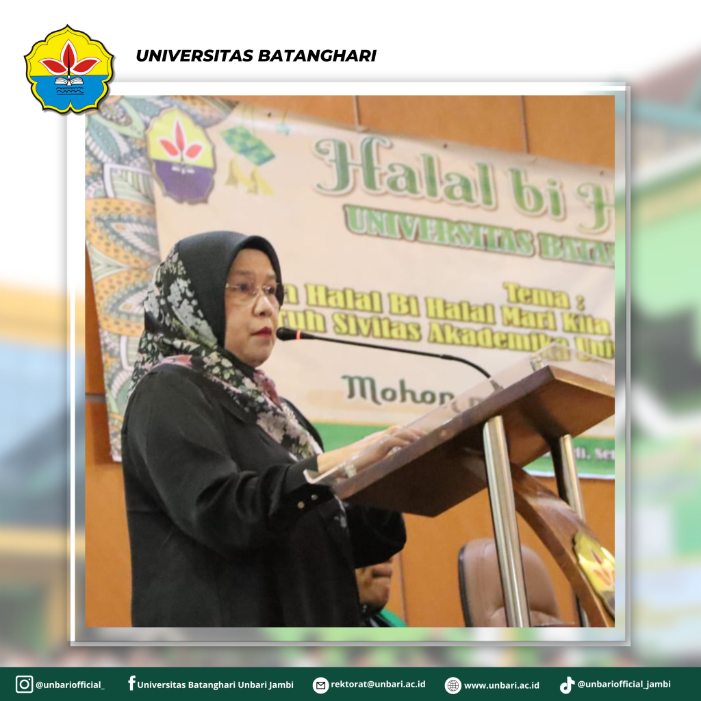 Pjs. Rektor UNBARI ibu Afdalisma, SH.,M.Pd. juga sekaliguas Kepala LLDIKTI Wilayah X Sumbar dan Jambi dan Civitas Akademika Univesitas Batanghari pada Tanggal 29 April 2024 Mengadakan Acara “Halal Bi Halal” Dengan Tema “Dengan Halal Bi Halal Mari Kita Pererat Silaturahmi Seluruh Sivitas Akademik Universitas Batanghari” Mohon Maaf Lahir dan Bathin dilaksanakan di Aula Abdulrahman Sayuti Universitas Batanghari