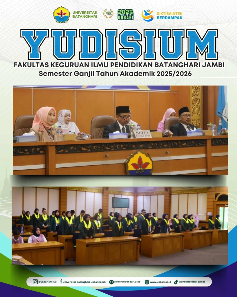 Jambi, 2025 — Universitas Batanghari (UNBARI) menyelenggarakan rangkaian yudisium untuk semester ganjil Tahun Akademik 2025/2026 sebagai bagian dari proses pelepasan mahasiswa yang telah menyelesaikan studi. Yudisium di berbagai fakultas digelar dengan penuh khidmat, menandai transisi para mahasiswa dari status pelajar menjadi sarjana dan profesional.